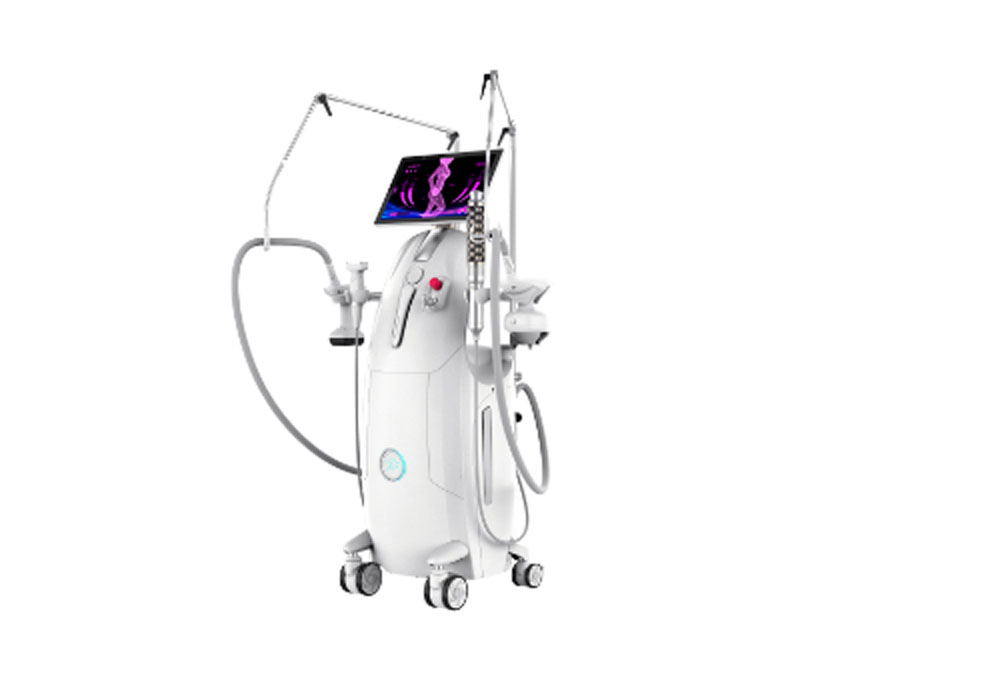 SYNERA est une technologie esthétique professionnelle 5-en-1, conçue pour lisser la peau, raffermir les tissus et remodeler la silhouette, grâce à une combinaison synchronisée de radiofréquence, infrarouge, vacuum, rouleaux mécaniques et micro-vibrations compressives.